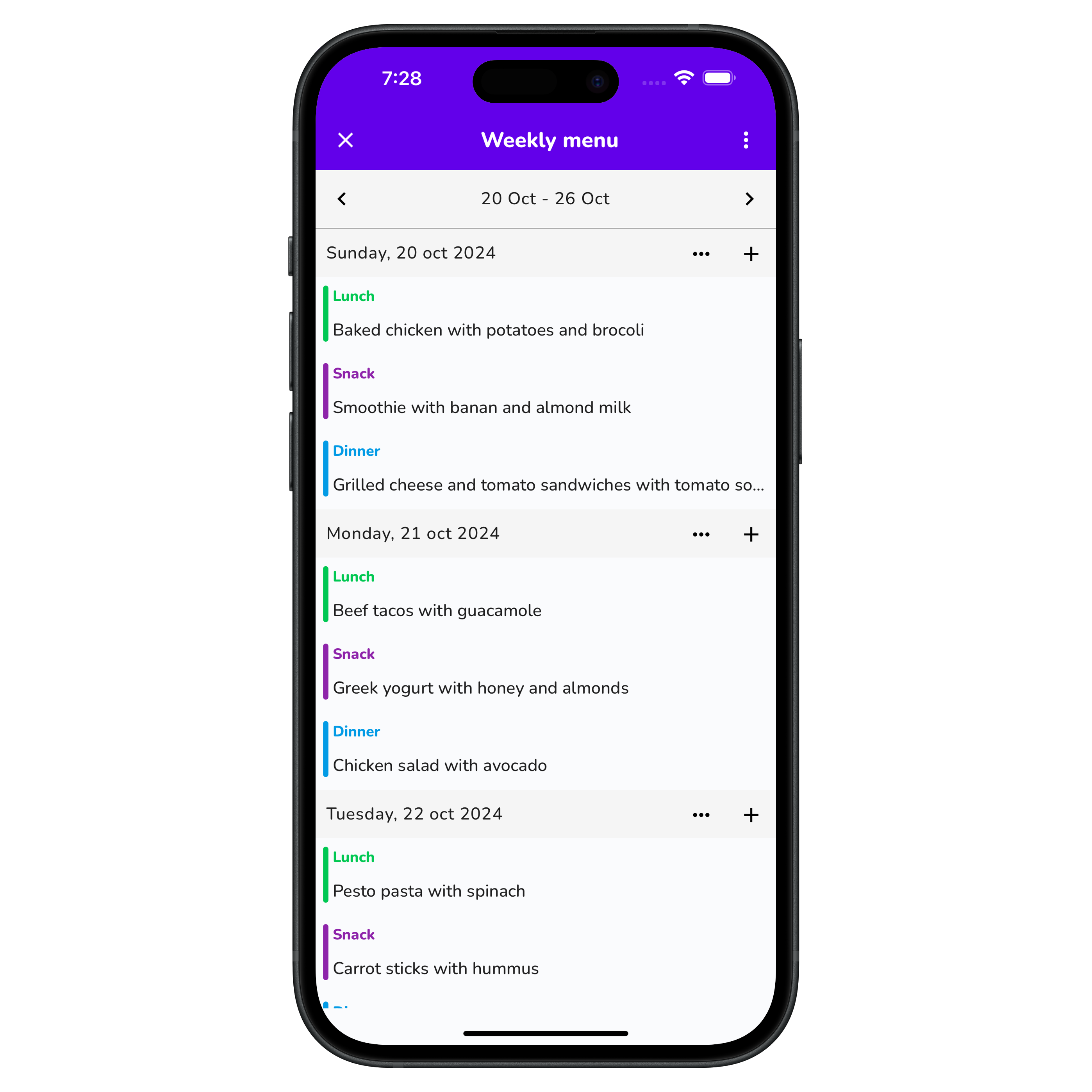 Plan nutritious meals for the whole family. Schedule breakfast, lunch, and dinner to stay organized and support healthy eating habits.